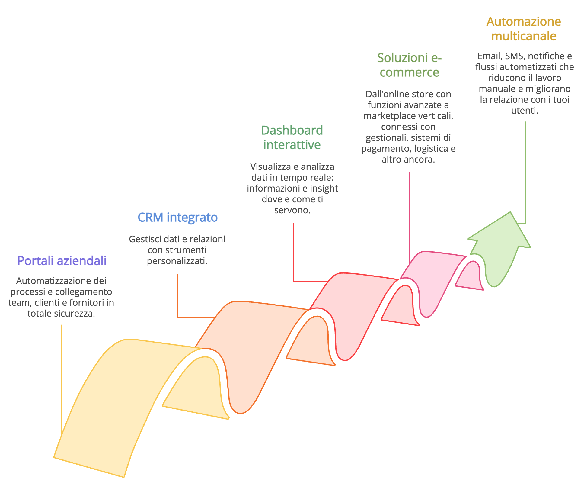 Non creiamo semplici siti, ma piattaforme integrate che diventano il cuore dei processi aziendali: